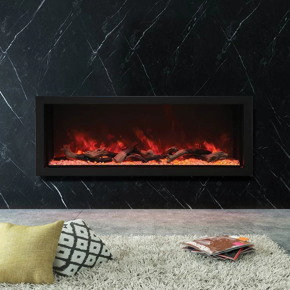 Amantii Panorama Deep Extra Tall Indoor/Outdoor Built-In Smart Electric Fireplace provides a premium heating alternative to a wood or gas fireplace. The Panorama Deep Extra Tall series is an instant upgrade for any space and features an outdoor-compatible design for installation flexibility. The adjustable ambient LED canopy lighting adds a captivating touch to your room, while the cutting-edge flame presentation allows for effortless color changes. Customize your ambiance with a choice of premium media kit. Additional features such as an integrated 5,000 BTU heater and remote control add to an already impressive package. Furthermore, with the convenience of WiFi-enabled Smart technology, you can have ultimate control over the fireplace right from your smartphone. Enjoy the comfort of a fireplace without the hassle and cost of gas or wood when you add an Amantii electric fireplace to your home.