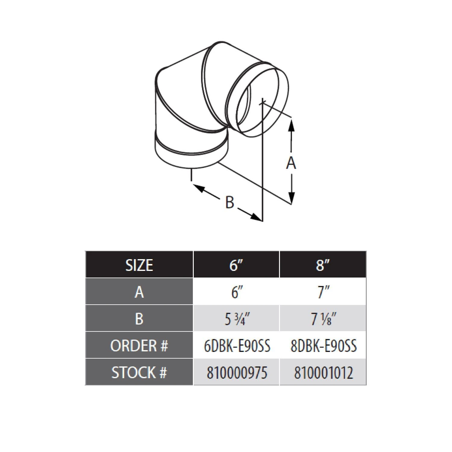 DuraVent DBK-E90SS DuraBlack Stainless Steel 90 Degree Elbow provides a premium product for use with the DuraBlack chimney system. This stainless steel component allows for offsets around obstructions as needed or to orient a stovepipe to exit horizontally through a wall installation. Elbow angles are adjustable for added versatility. These adjustable elbows are also manufacturer drip-free so creosote travels back to the stove as intended. This component is not recommended for rear exit appliances.