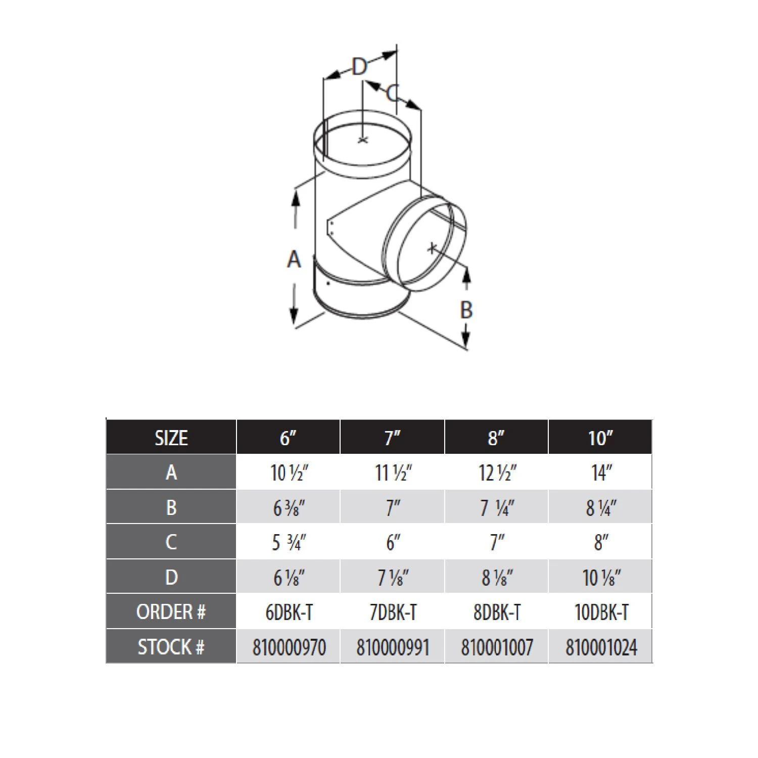 DuraVent DBK-T DuraBlack Tee with Clean-Out Cap provides a premium product for use with the DuraBlack chimney system. This component installs with rear exit appliances and appliances requiring a barometric damper.