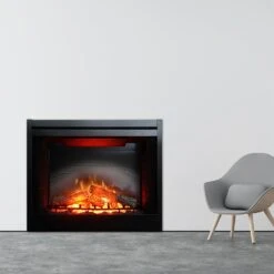 This fireplace unit includes a multifunction smart thermostat remote with variable flame height control. This convenient design allows control of the fireplace based on room temperature or manual control–whichever option offers more convenience for the user. The remote control also offers full control over the integrated fireplace blower and accent light.