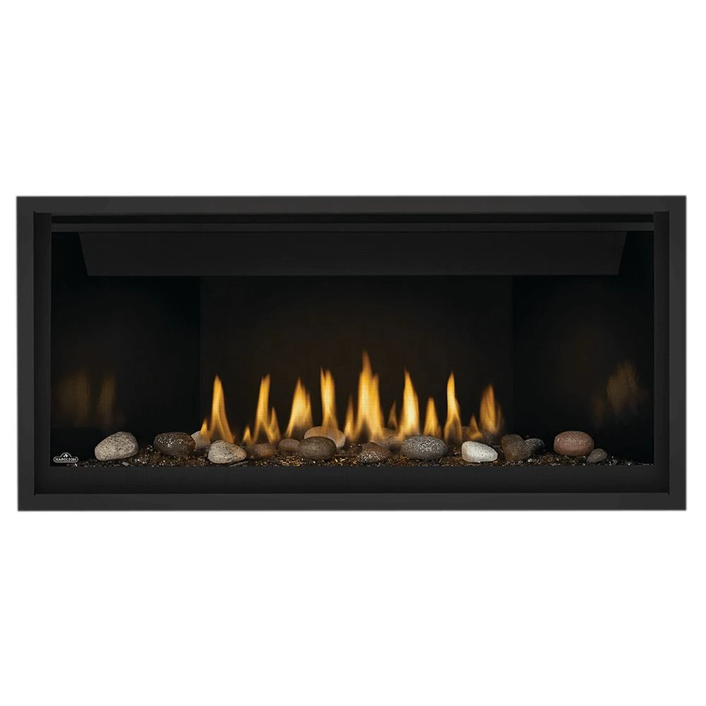 Napoleon BL56NTE Ascent Linear Series Electronic Ignition Direct Vent Gas Fireplace provides a premium gas fireplace for your living space. This unit provides a luxurious fireplace display through the use of Napoleon’s Divinity flame pattern for an impressive firebox display, while Crystaline topaz ember glass offers a contemporary flair. A clean face design ensures a full viewing angle and a uniform installation, while the included safety barrier allows for safe operation. With its non-combustible design, this unit can be mounted without the steel framing.