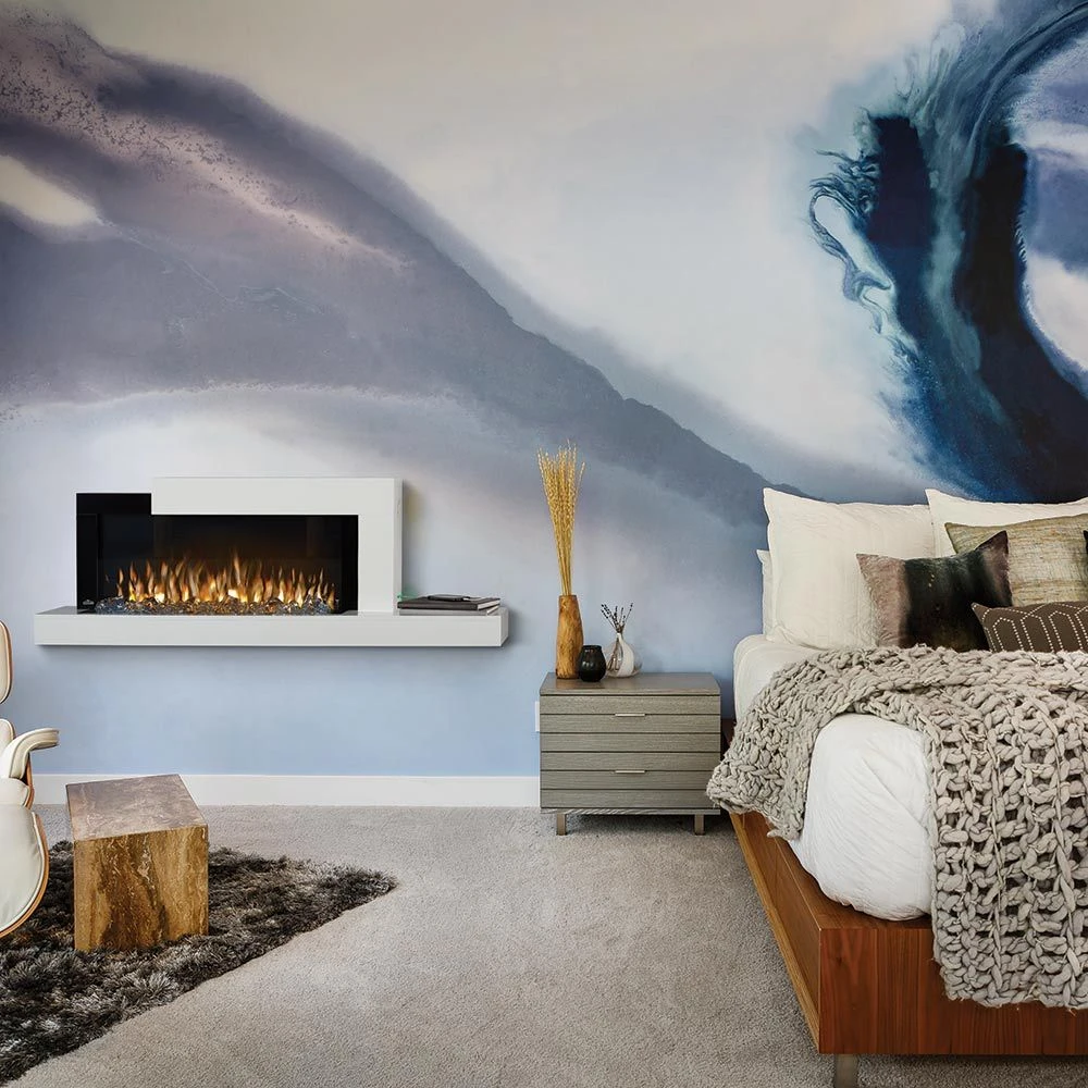 Napoleon NEFP32-5019W-IOT Stylus Cara Elite Wall Mount Electric Fireplace with Remote and Wood Surround provides a beautiful wall mount fireplace option to enhance your favorite indoor living space. This fireplace comes with the included remote control and can be voice controlled with your Google Home or Alexa. The dark tint glass provides enhanced flame appearance and the flames have 7 color settings for customization. This modern design fireplace is ready to use straight from the box for simple installation and features an LED weather and information display in the top left-hand corner of it’s 59-inch wide wood surround.