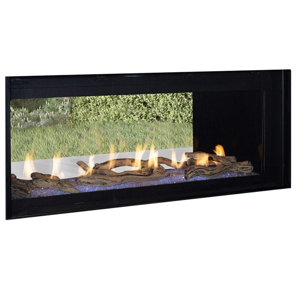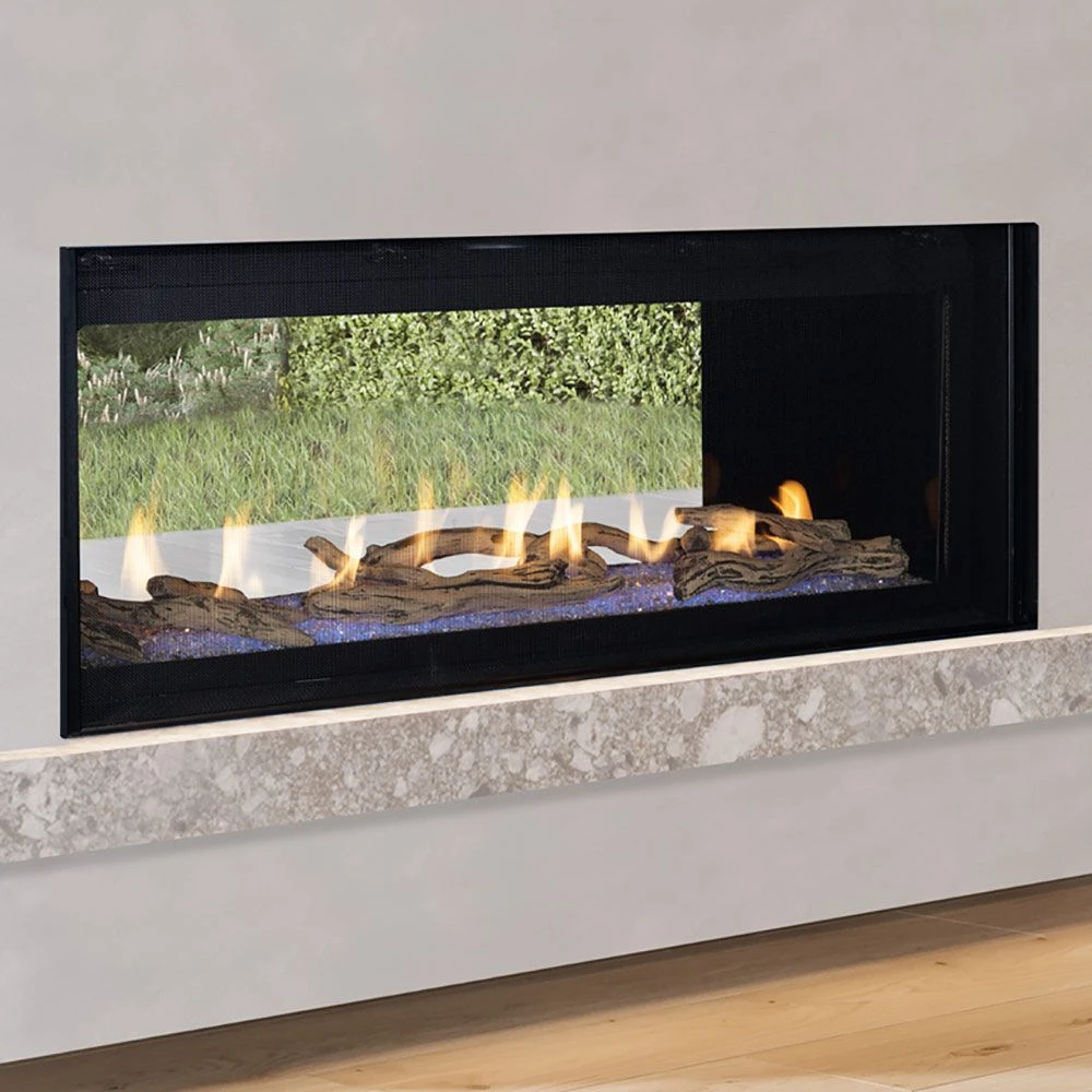 Superior 48-Inch Electronic Ignition See-Through Direct Vent Linear Gas Fireplace with Lights and Remote provides a contemporary vented gas fireplace for your space. This premium fireplace offers a combination of beauty and performance capable of making it the centerpiece of any space. Featuring high-quality fire glass, a black painted interior and a powerful burner system designed to produce tall, dancing flames, this breathtaking unit creates an impressive display in any installation. A clean-face design provides a seamless built-in look with ceramic glass designed for optimum heat transfer and safety, while integrated tile stops allow for easy finishing. The electronic ignition includes battery backup to provide continued operation in the event of a power outage and the included conversion kit allows this fireplace to become a see-through unit.